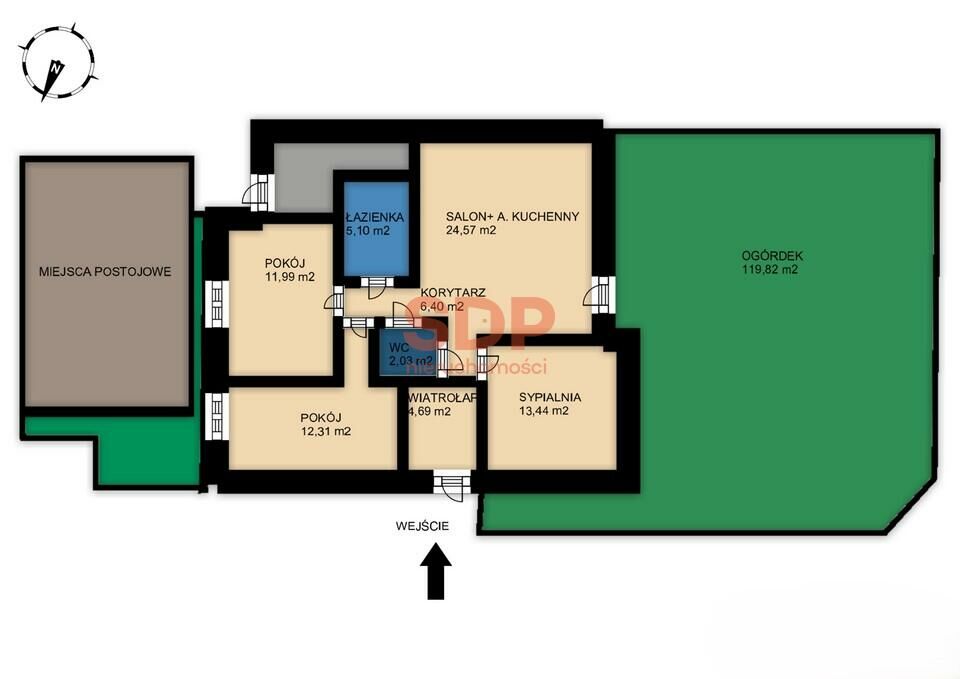 Ogród: 119,82 m2, teren ogródku wyrównany, bez utworzonych nasadzeń.